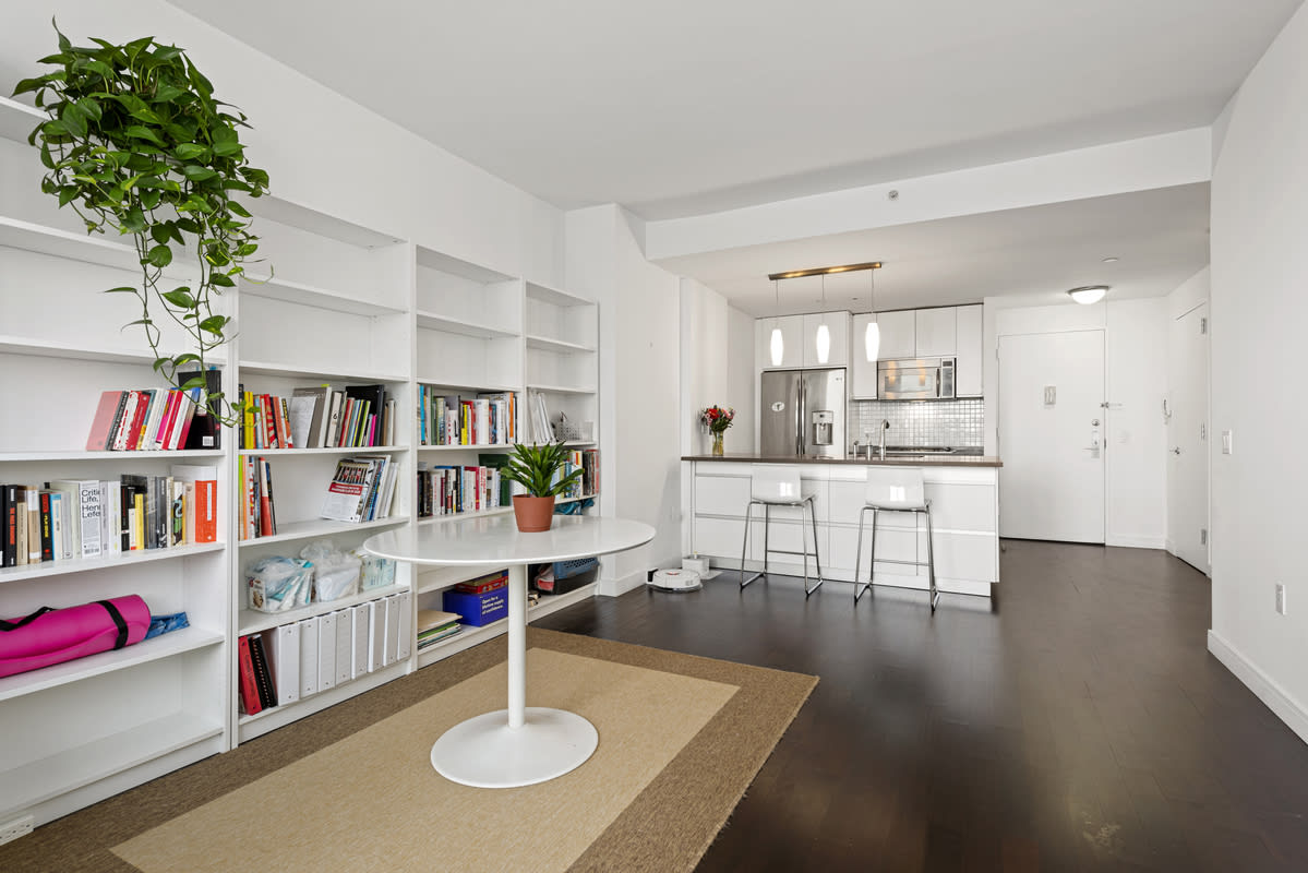 The spectacular, unobstructed skyline views of Manhattan and Brooklyn, providing an abundance of natural light to the open living space of this charming modern apartment, this stunning 1BR/1BA features an open kitchen with stainless steel appliances and hardwood floor finishes that delivers an effortless ease of living and comfort. The apartment features 709 square feet and is nothing short of a great design and layout.